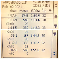 Workout starts on the rower. Keep the straps loose to help speed up transitions or you can lose 5-10 seconds each round getting on and off the rower. There were three individual minutes where I did not log any meters because I needed to get my heart rate down. Even 50 meters during each of these rounds would have knocked off a minute from the total time. This workout should be completed sub-15 minutes.