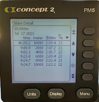 This was the last workout of the challenge. Happy with this time overall and felt great thanks to a solid warmup. I started around 26 s/m and increased both the pace and rate with each 500m.