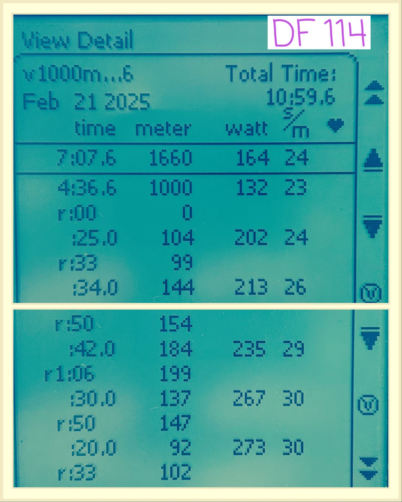 Great piece to build your stamina while sprinkling in some spicy bursts of power. Rowed a fifth set as a cooldown.